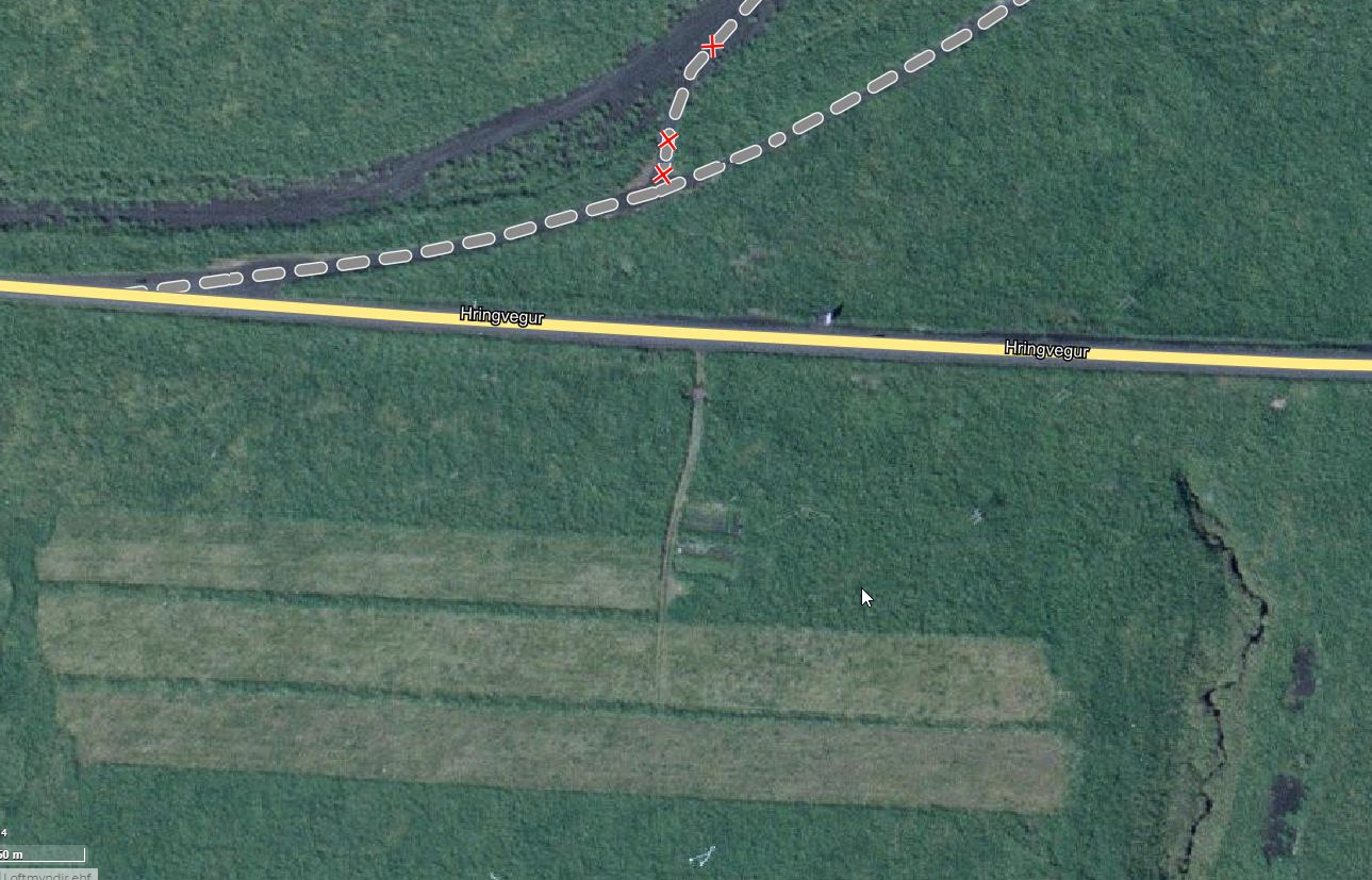 Skotpallurinn milli Múlakvíslar og Hjörleifshöfða sást nokkuð vel af gamla veginum (sunnan hans, nær Hjörleifshöfða minnir mig), hef ekki athugað hvernig hann liggur miðað við “nýju” veglínuna.