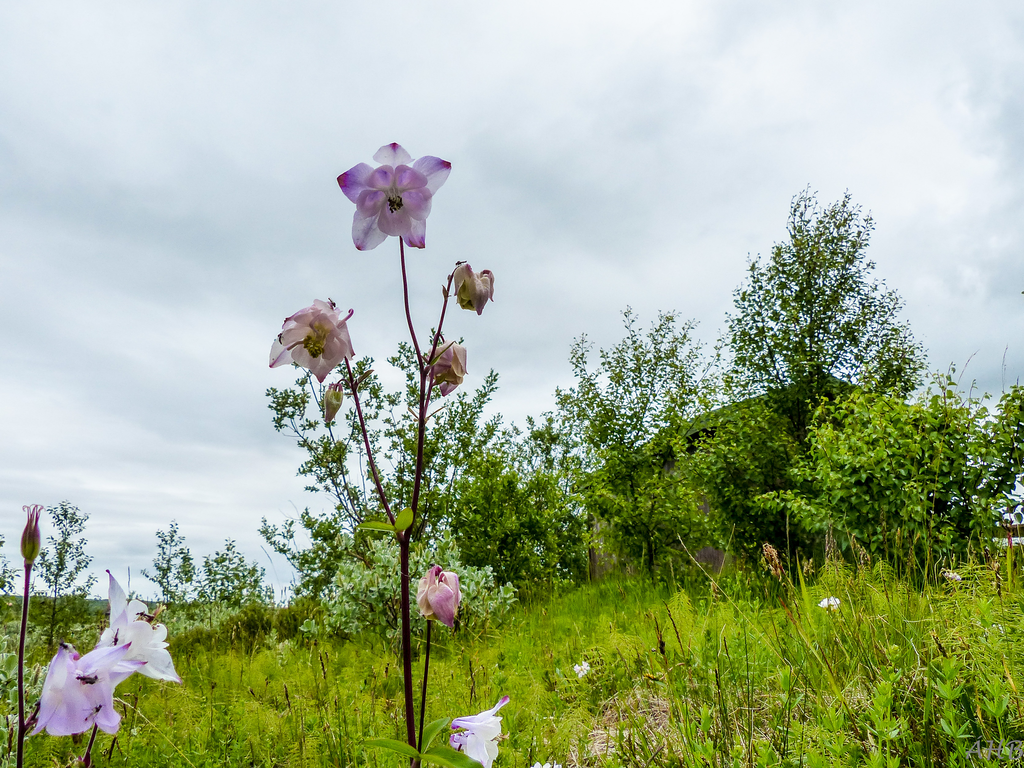 Júlí 2022. Ásýnd landsins var alt önnur um aldamótin þegar hafist var handa. Mest áberandi var krækiberja- og bláberjalyng, Gróðurþekjan var þunn og víða sá í mold þar sem hún hafði horfið. Landið hentaði greinilega illa til skógræktar. Nú hefur landið blómstrað eins og sjá má á myndinni. Í baksýn er skógurinn í Haukadal. Frúin minnti ritarann á að hann hafi fyrir allmörgum árum skroppið í Haukadalsskóg og fengið lánaðar nokkrar plöntur af blágresi. Kannski er blágresið á myndinni afkvæmi þeirra?